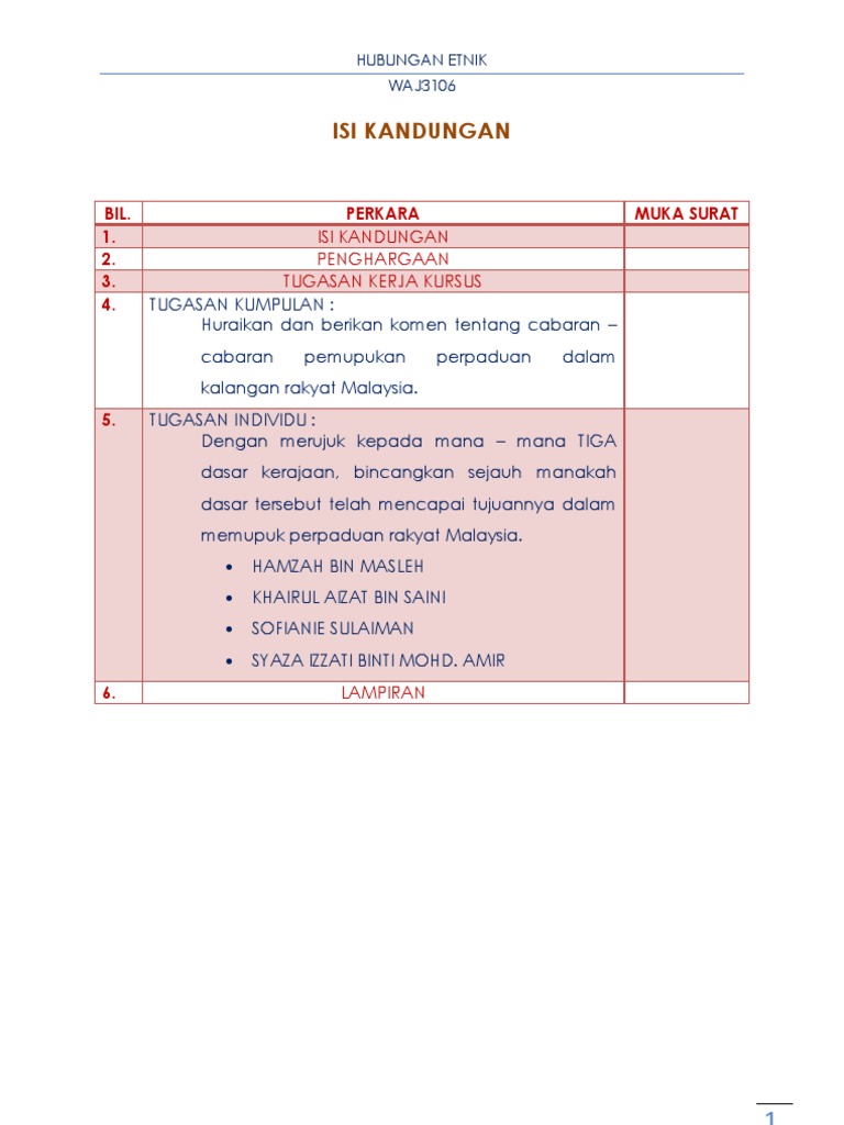 Dalam masa untuk menyempurnakan refleksi report ini, saya telah banyak mengenali hubungan etnik dalam kalangan masyarakat pelbagai etnik di negara kita. Laporan reflektif hubungan etnik merupakan sebuah subjek yang mendalami pelbagai aspek sebagai contoh membincangkan tentang konsep pembinaan negara bangsa dan. Refleksi 1 assalamualaikum kami ucapkan bagi pembuka kata refleksi tugasan projek kerja kursus berasaskan ilmu bahasa melayu 1 saya. Hubungan etnik merupakan sebuah subjek yang mendalami pelbagai aspek, sebagai contoh membincangkan tentang konsep pembinaan negara bangsa dan kepentingan kesepaduan etnik yang harmoni untuk memastikan malaysia berjaya dalam membina negara bangsanya yang tersendiri. Doc laporan she101 2 hubungan etnik pusat pengajian pengurusan kumpulan 50 konsep hantaran perkahwinan dalam masyarakat nurliyana idrus academia edu. Laporan reflektif hubungan etnik docx sarjana muda pengurusan sumber manusia dengan kepujian semester mei tahun 2018 laporan reflektif mpu 3112 course hero mpu3113 hubungan etnik sekolah pelbagai aliran di malaysia red pastel e Cel 2106 scl worksheet week 12. Kuantan learning centre phone number : Subjek hubungan etnik ini lebih kepada sejarah perlembagaan malaysia.kalau dulu sewaktu sekolah menengah, subjek sejarah amat sukar untuk saya fahami kerana banyak fakta yang perlu diingati.tetapi,implikasi daripada sejarah inilah wujudnya keharmonian di malaysia.sewaktu pengajaran subjek ini,pemahaman dan pendekatan terhadap sejarah kehidupan masa sebelum merdeka dan selepas merdeka memberi banyak makna dalam kehidupan kita pada masa kini.apa pun ia memberi kesedaran kepada kita betapa. Tandai sebagai konten tidak pantas. Mto104539 ringkasan video whose god mengisahkan tentang pendapat yang berlainan antara rakyat malaysia dan aktivis sosial tentang penggunaan nama allah antara orang yang beragama islam dan bukan beragama islam. Laporan reflektif hubungan etnik laporan reflektif hubungan etnik. Laporan she101/2 hubungan etnik pusat pengajian pengurusan kumpulan 50 konsep hantaran perkahwinan dalam masyarakat